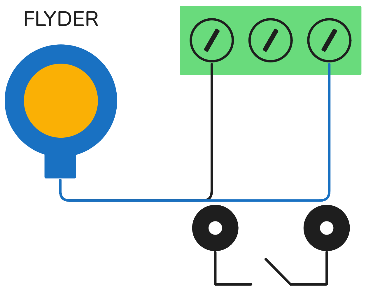 Vi bruger kun det sorte og blå kable i vores tilslutninger. Det sorte kable skal sættes fast til venstre og vores blå til højre. Prøv at trække lidt i den for, at se om de er spædnt fast.
